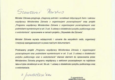 Ministerstwo Zdrowia złożyło deklarację przyjęcia Programu współpracy z organizacjami pozarządowymi