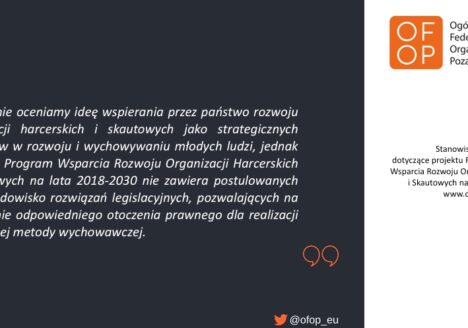 Stanowisko OFOP dotyczące projektu Rządowego Programu Wsparcia Rozwoju Organizacji Harcerskich i Skautowych na lata 2018-2030