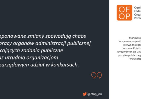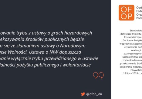 Stanowisko OFOP dotyczące Projektu rozporządzenia ws. szczegółowych warunków uzyskiwania dofinansowania realizacji zadań z zakresu wspierania rozwoju społeczeństwa obywatelskiego…
