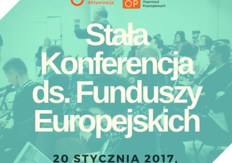 Już 20 stycznia 2017 r. zapraszamy na Stałą Konferencję ds. Funduszy Europejskich, która odbędzie się w Warszawie. Całość organizowana jest przy współpracy Fundacji Aktywizacja i Ogólnopolskiej Federacji Organizacji Pozarządowych. Miejsce: Marzyciele i Rzemieślnicy.…